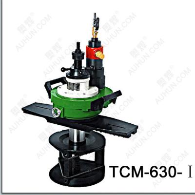 本系列氣動(dòng)管子坡口機(jī)是由葉片式氣動(dòng)馬達(dá)為動(dòng)力,經(jīng)數(shù)級(jí)行星齒輪獲得低轉(zhuǎn)速大扭短刀盤驅(qū)動(dòng)。刀盤上裝有自動(dòng)走刀機(jī)構(gòu),能在0°-37°度范圍內(nèi)對(duì)管子進(jìn)行坡口。